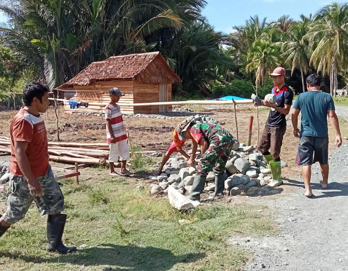 Dalam kegiatan yang dilaksanakan dengan penuh semangat ini, Sertu Hanas bersama masyarakat setempat bekerja keras membangun fondasi rumah. Kegiatan gotong royong ini bukan hanya sekadar pembangunan fisik, tetapi juga menciptakan suasana kebersamaan dan solidaritas antara Babinsa dan warga.