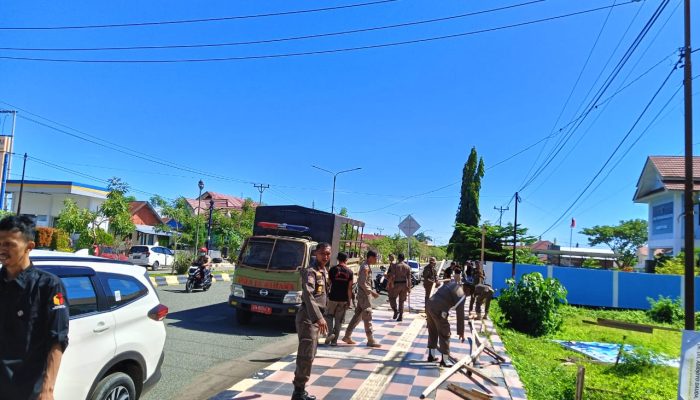 Buol, Tabenews.com – Badan Pengawas Pemilihan Umum (BAWASLU) Kabupaten Buol bersama Satuan Polisi Pamong Praja (Pol PP), Pengawas Pemilihan Umum Kecamatan Biau, PPK Kecamatan Biau,TNI dan Kepolisian Resort Buol, melakukan pembersihan dan penertiban Alat Peraga Kampanye (APK) yang terpajang di jalan A Karim Mbouw (Areal perkantoran) zonasi yang di larang, Kamis (4/01/2024).