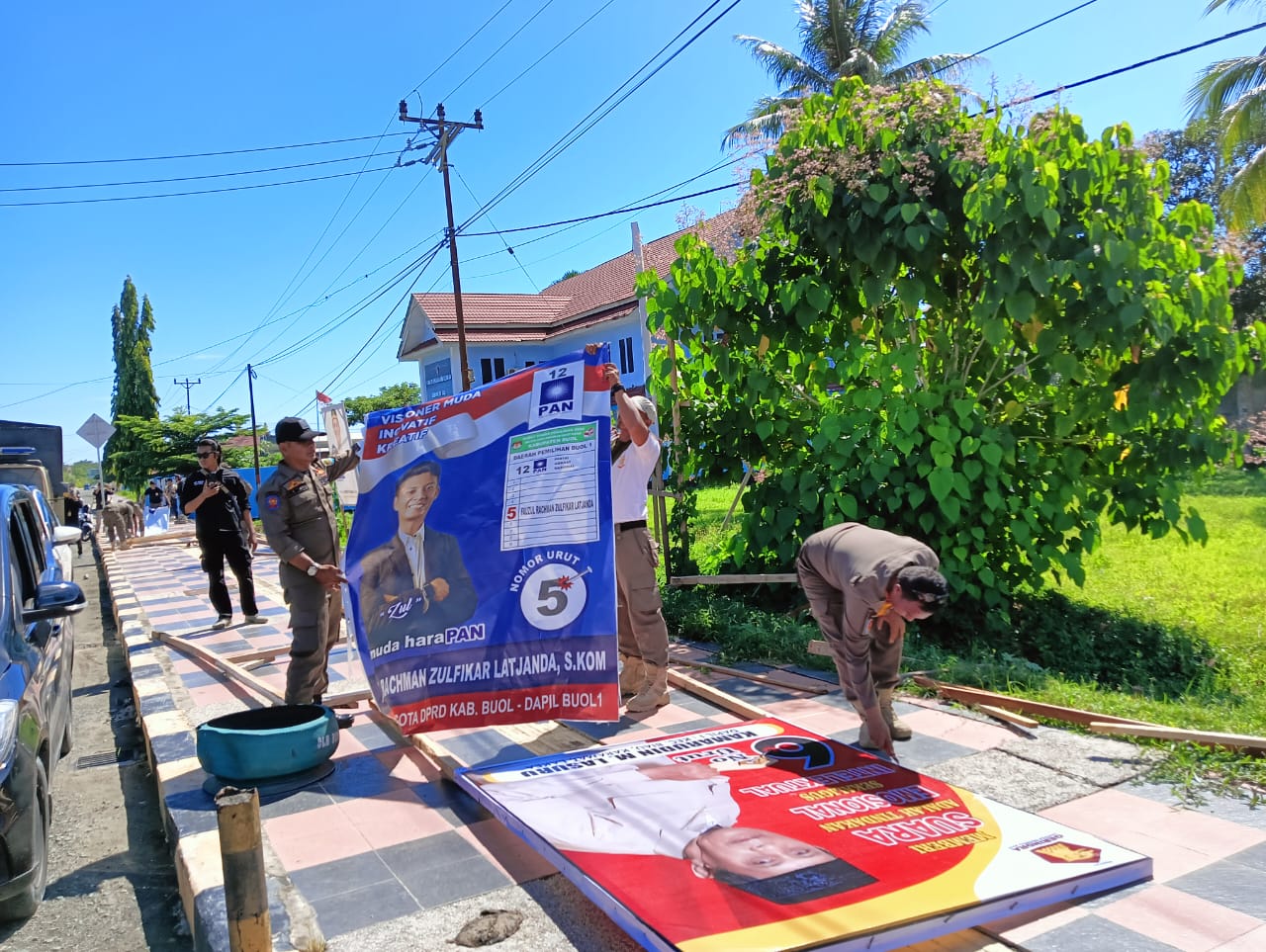 Hari ini kita melakukan penertiban alat peraga kampanye di wilayah jalur dua perkantoran kelurahan Leok II kecamatan Biau,” ucap Ketua Bawaslu Buol Karianto.S.Sos