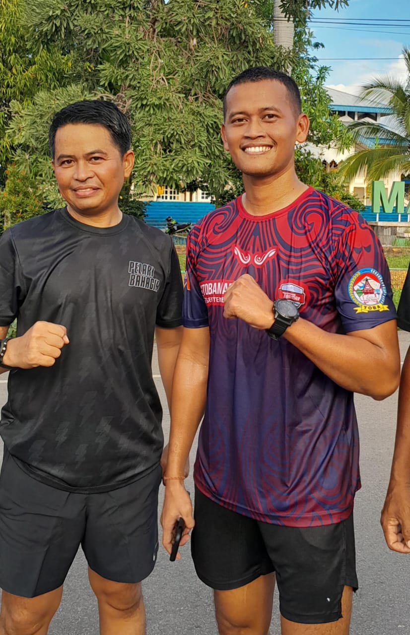 Kasat Samapta Iptu Haerul dan jajaran club lari seUkuRUN serta Kapolsek Dakopamean,Kabid Bina Marga Dinas PU Tolitoli setelah lari istrahat sarapan pagi di salah satu warkop dengan akrab saling tukar cerita sepatu olahraga dengan Keakraban yang di traktir oleh Syahrul dari PT Rajawali selaku donasi club..