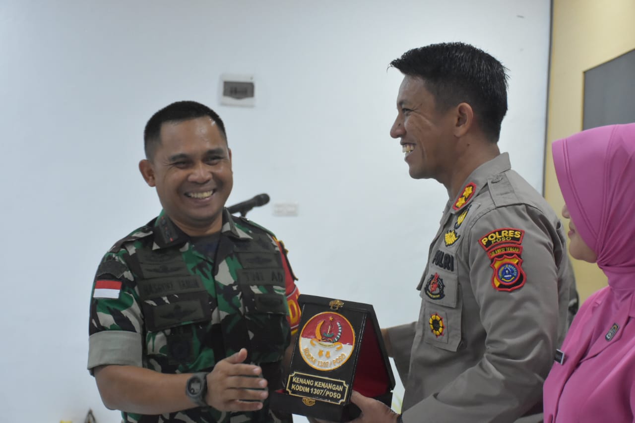 “Semoga kerjasama yang sudah dijalin dan dibina dengan baik selama ini dapat diteruskan dan ditingkatkan lagi. Hal ini untuk mewujudkan sinergitas dan soliditas antara TNI Polri dan demi menciptakan situasi Kamtibmas di wilayah Poso yang nyaman aman serta kondusif,” Tegas Letkol Inf. Hasroel Tamin, S.H.,M.Hub.Int.