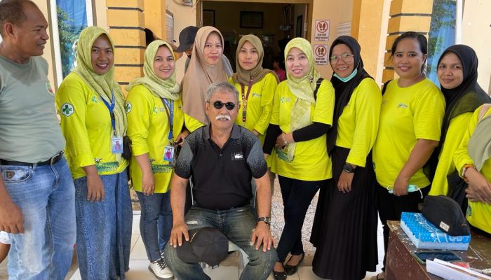 Usai dari tengok pasien, Alek menyempat foto bareng staf di Puskesmas itu.