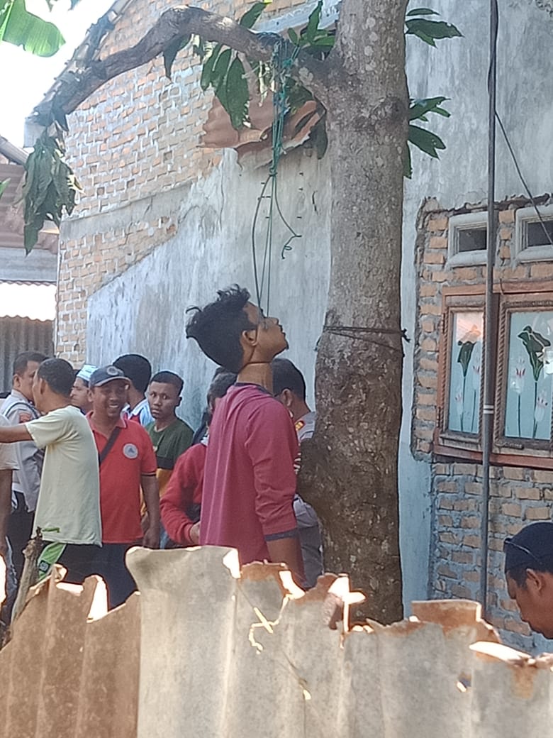 Berawal seorang saksi mata, Anjanah mendengar tetangganya menyebut “INALILLAHI” dan terkejut sambil menutup jendela dengan keras karena penasaran saksi keluar melihat ke samping rumah sebelah kanan dan melihat seorang Laki-laki tergantung di pohon mangga dengan seutas tali nilon warna biru, kemudian melihat hal tersebut dan saksi berteriak meminta tolong dan banyak warga berdatangan.