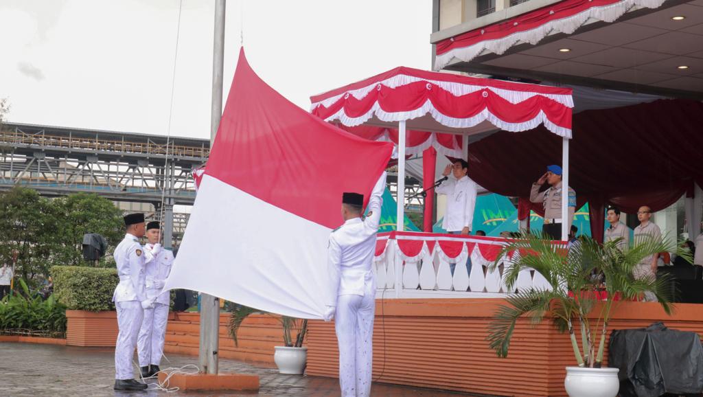 Morowali, TABEnews.com.- Kawasan Industri Indonesia Morowali Industrial Park (IMIP) menggelar upacara HUT ke-78 Republik Indonesia, di halaman kantor PT IMIP, Kamis (17/8). Meski diguyur hujan, para peserta setia bertahan dalam barisan sampai upacara pengibaran bendera Merah Putih selesai.