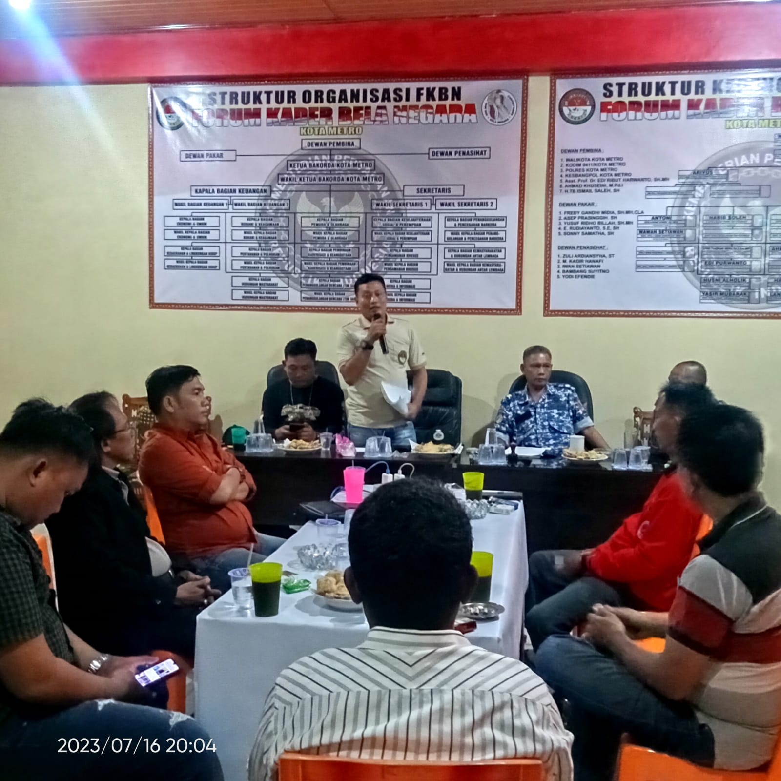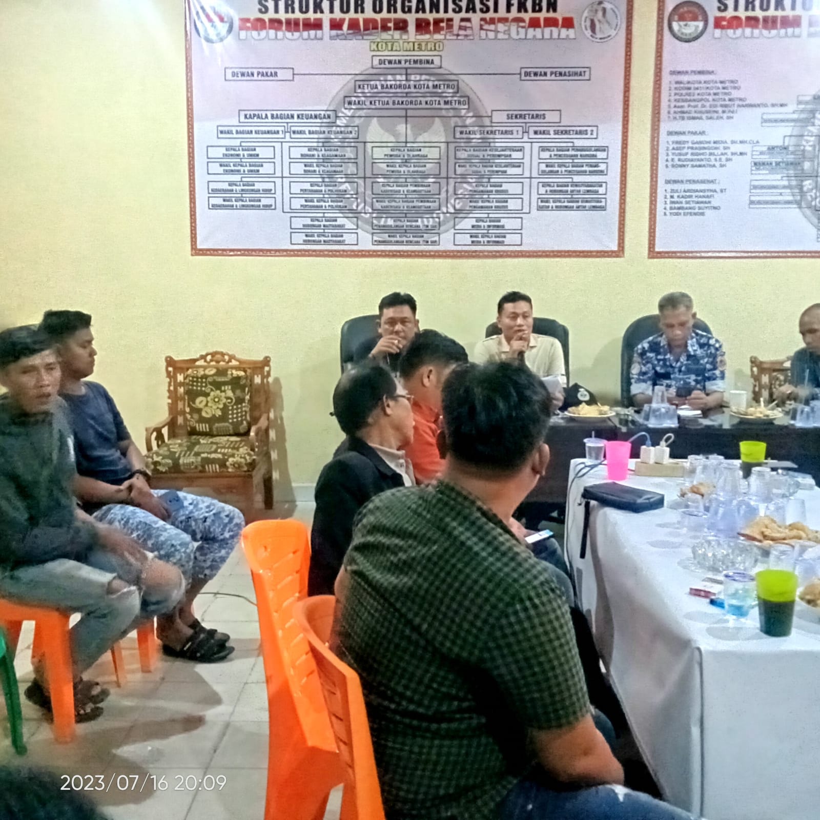 Kota Metro TABEnews.com – Jelang Pelantikan pada Agustus 2023 mendatang, jajaran kepengurusan Forum Kader Bela Negara (FKBN) Kota Metro menggelar rapat koordinasi kesiapan sekaligus pemantapan kepengurusan/keanggotan.