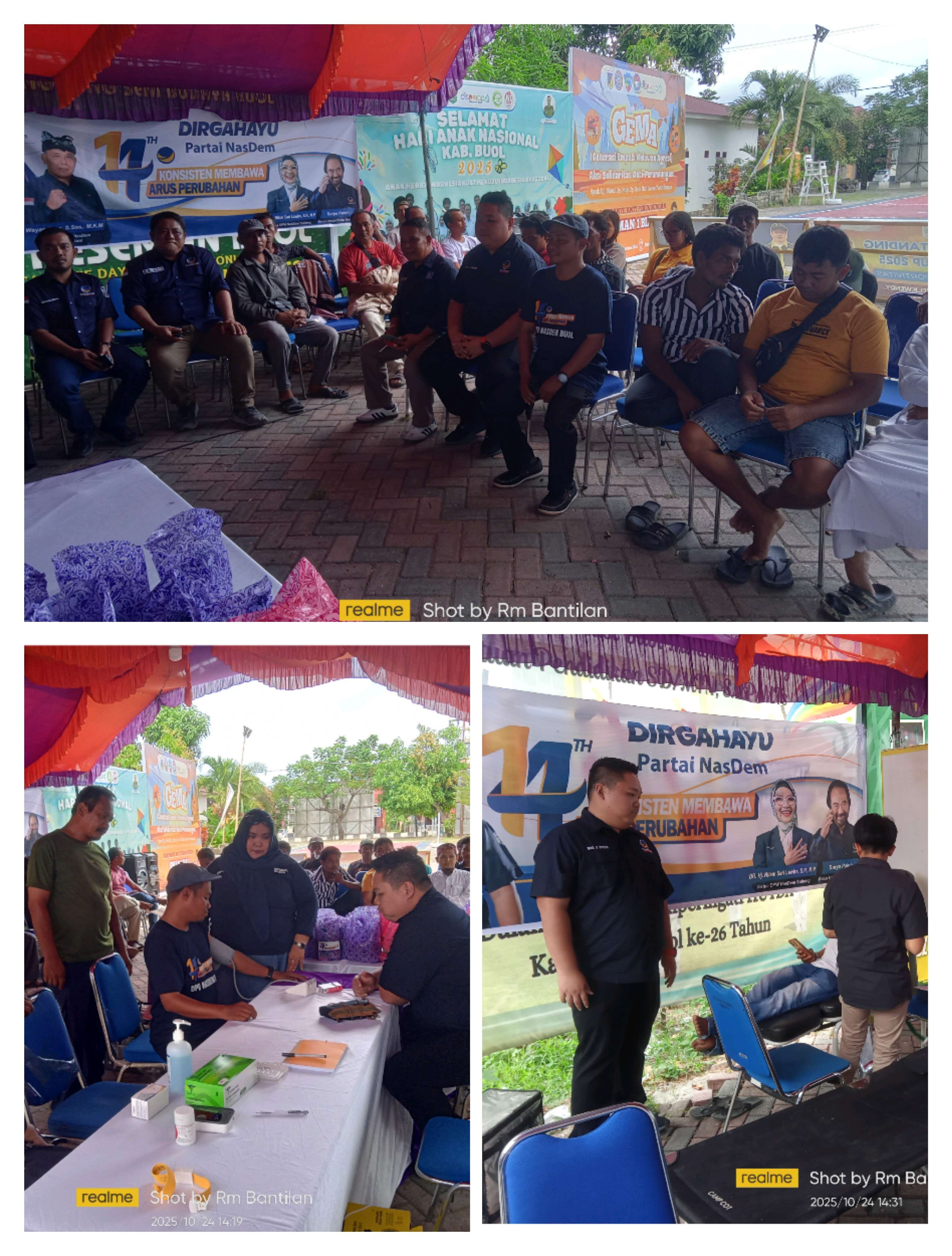 Buol Tabenews.com – DPD Partai NasDem Kabupaten Buol menggelar donor darah bersama Unit Transfusi Darah (UTD) Mokolyuri Buol, Jum’at (24/10/2025). Kegiatan yang berpusat di samping kantor DPRD Buol, dilaksanakan dalam rangka menyambut HUT ke-14 parpol besutan Surya Paloh yang jatuh pada 11 November mendatang.