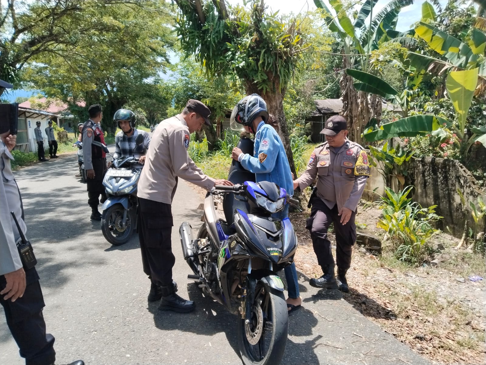 TABEnews–Lima hari pasca lebaran kondusifitas wilayah hukum polsek galang terus di jaga sesuai penegasan kapolres Tolitoli di hadapan Bupati saat Ramadhan yang lalu,karena itulah Kapolsek Galang AKP H. Siswanto, S.H.,M.H bersama jajaran laksanakan Razia di jl. Bandar udara arah menuju obyek wisata pantai lalos pada sabtu pukul 11.00 wita (5/4/2025)