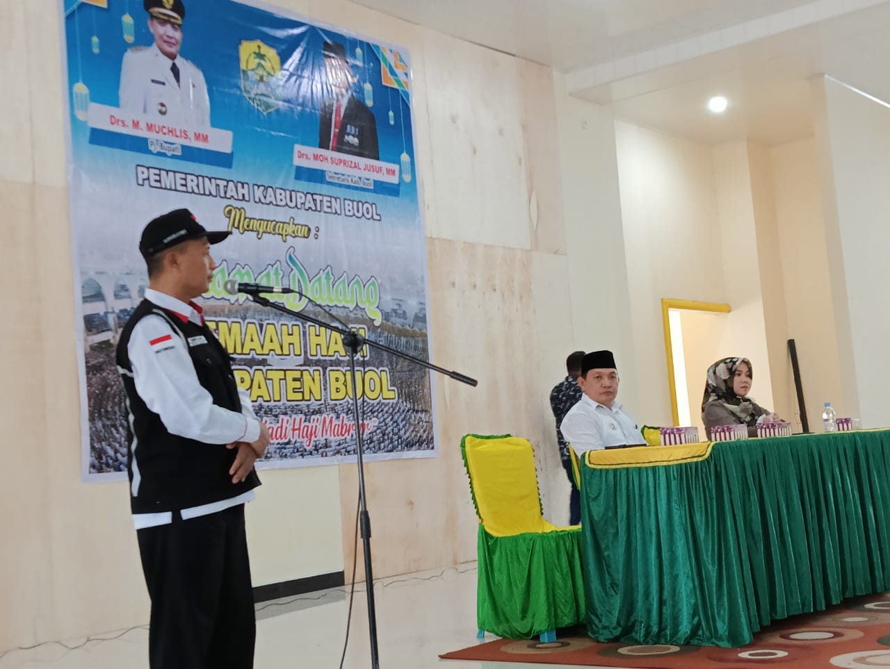 PJ Bupati Buol menyampaikan dalam sambutannya “selamat datang dan selamat bertemu kembali kepada seluruh jamaah haji Kabupaten Buol. “Saya mengucapkan selamat datang kepada seluruh jamaah haji Kabupaten Buol , selamat bertemu kembali dengan segenap keluarga handai taulan dan para sahabat, semoga telah menjadi Haji yang mabrur” ucap Pj. Bupati Buol”.