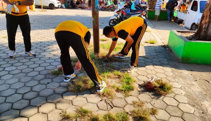 Tolitoli, TABEnews.com.-Jajaran Personil Polres Tolitoli melaksanakan Giat Pembersihan Lingkungan Secara serentak bersama masyarakat disekitar pasar Susumbolan, Kamis (13/7/2023).