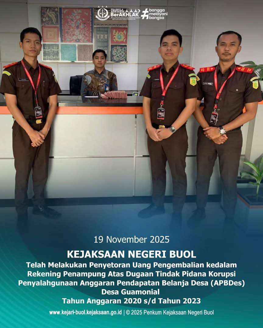 “Kami siap mendengarkan Anda. Setiap laporan masyarakat sangat berarti dalam upaya memberantas korupsi dan menegakkan keadilan,” demikian keterangan resmi dalam publikasi Kejari Buol.