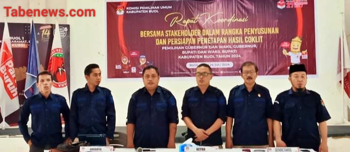 Buol, Tabenews.com – Komisi Pemilihan Umum (KPU) gelar rapat koordinasi (Rakor) bersama stakeholder dalam rangka penyusunan dan persiapan hasil pencocokan dan penelitian (Coklit) untuk Pemilihan Gubernur dan Wakil Gubernur serta Bupati dan Wakil Bupati Kabupaten Buol tahun 2024.
