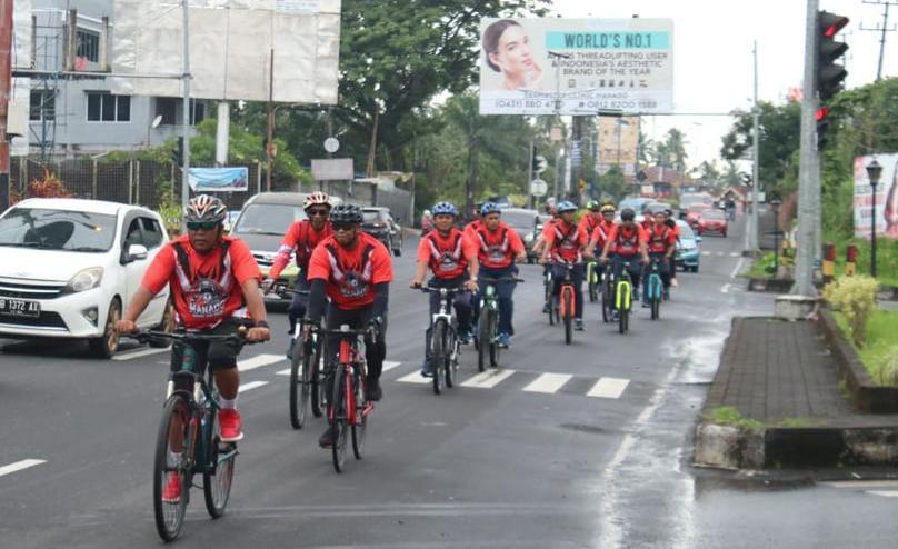 Manado mengemas acara orientas masuknya personel baru di lanudal dengan menggelar Fun Bike dan City Run di di kawasan Pantai Mega Mas Kota Manado, Senin (10/7/23).