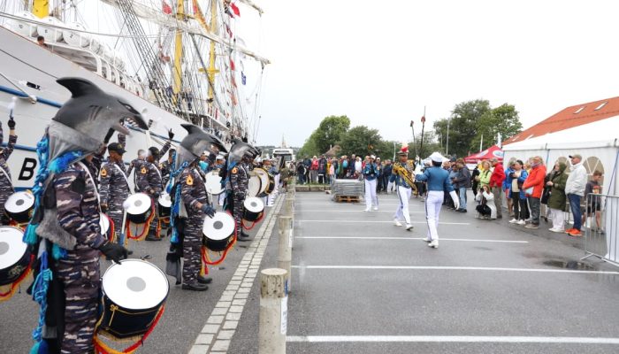 Kedatangan Satlat KJK 2023 Taruna AAL Angkatan ke-70 yang sandar di dermaga Fredrikstad diterima oleh Kuasa Usaha Ad Interim dan Kepala Fungsi Politik KBRI Oslo, Bpk. Yudi Fitriandi beserta staf dan Assiten Athan Mayor Lek Dhoni Samudera, dilanjutkan laporan Komandan KRI Bima Suci Letkol Laut (P) M. Sati Lubis dan Palaklat KJK 2023 Mayor Laut (P) Rendra Hariwibowo beserta perwakilan Taruna AAL.