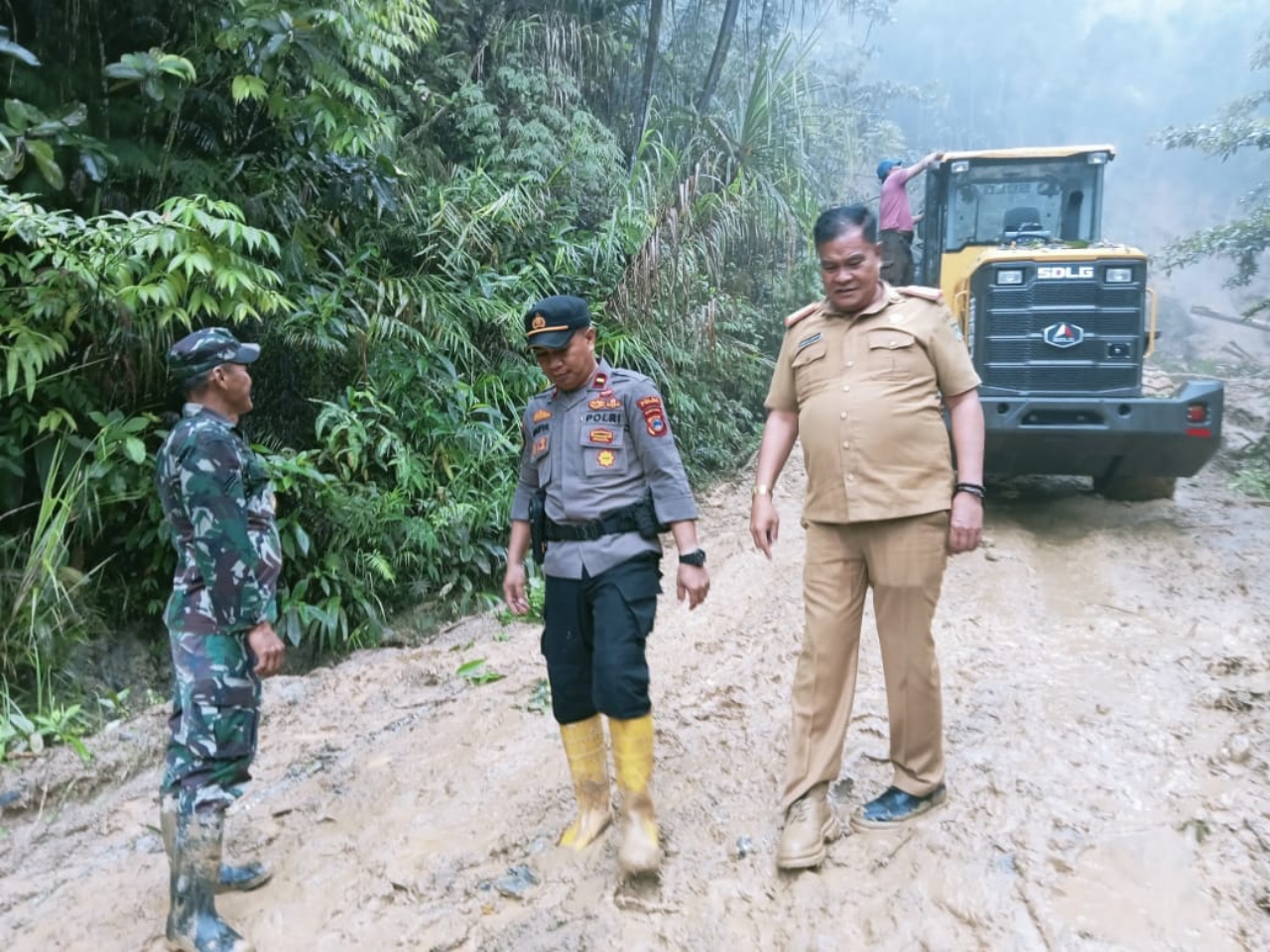 Mendengar laporan dari Babinsanya, Danramil 1307-09/Poso Pesisir, Kapten Inf Mulawarman berupaya dengan cepat menjalin koordinasi dengan pemerintah kecamatan dan pihak terkait untuk mendatangkan alat berat guna membersihkan material longsor yang menutupi badan jalan secara optimal karena akan di lalui pendistribusian logistik Pemilu.