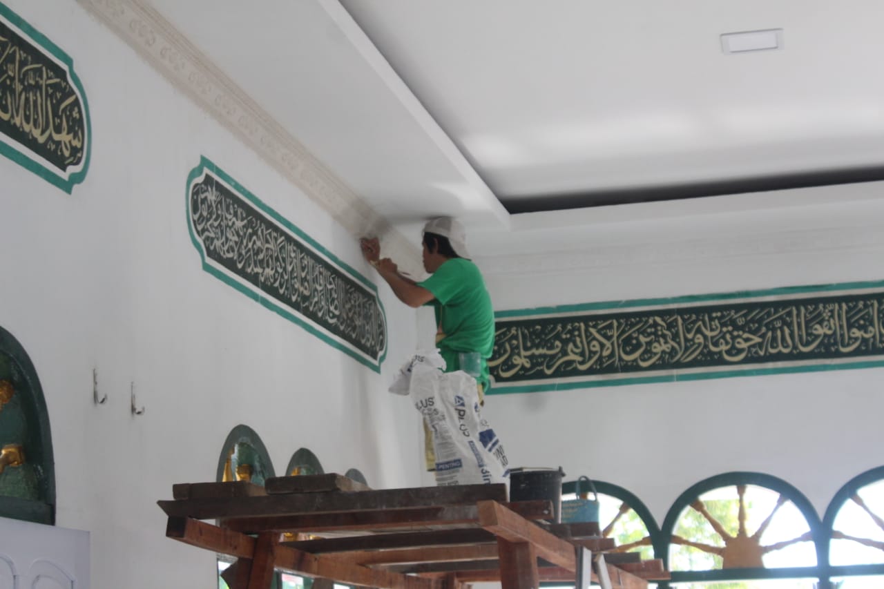 “Memasuki Hari ke 25 renovasi pembagunan Mesjid Nurul iman memasuki tahap pemasangan Lis Profil,” ungkap Serma Made.
