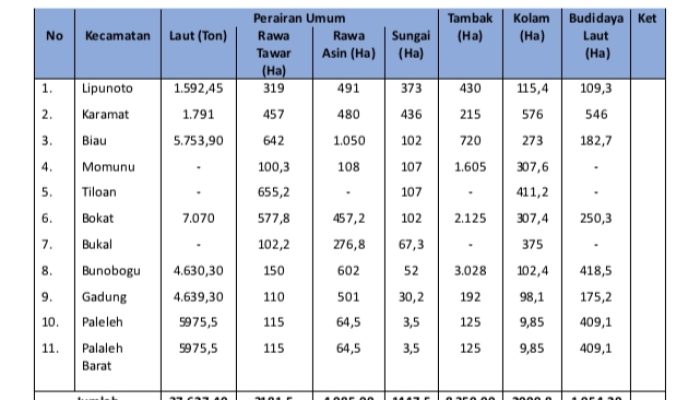 Dengan Panjang garis Pantai ± 167 Km serta pulau kecil, dengan potensi Lestari 37.627,7 ton/ tahun dan luas zona laut ± 3.777 km 2 .
