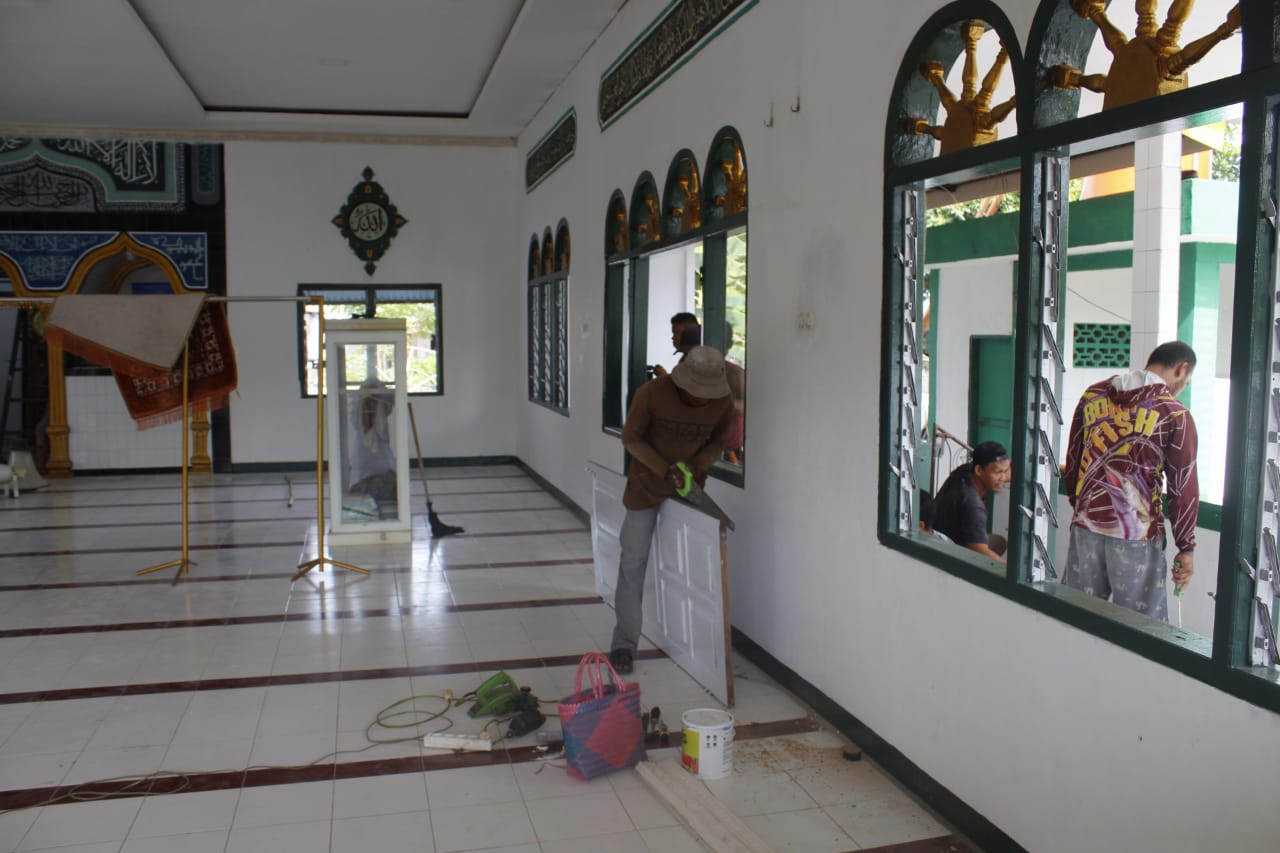 Salah satu sasaran TMMD ke-118 Kodim 1305/BT Mesjid Nurul Iman pada tahap pemasangan pintu yang sehari sebelumnya dilakukan pemasangan Jendela. Rabu (12/10/2023).