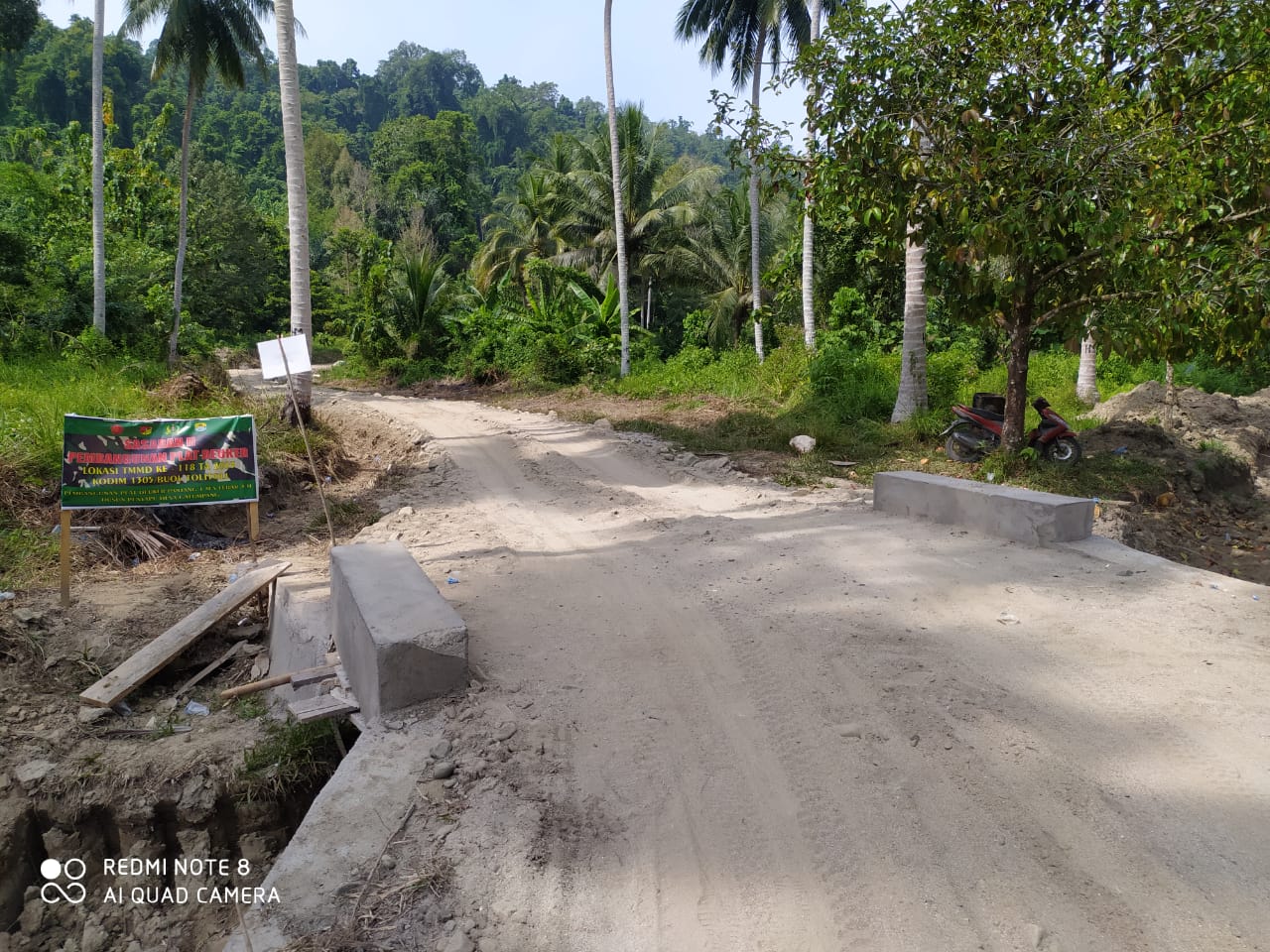 “Agar memudahkan kendaraan “Dump Truk” Melintas dan tidak merusak pekerjaan Plat Dueker, kami bersama anggota satgas TMMD 118 memasang kayu pelintas sementara yang terbuat dari batang kelapa, untuk ditaruh diatas plat Dueker,” ungkap Serka Toding, Senin (16/10/2023).