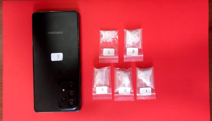 Barang bukti yang berhasil disita dari pelaku, lanjut Kasat Resnarkoba, meliputi 5 (lima) bungkus plastik cetik bening berisikan narkotika jenis sabu serta 1 (satu) unit handphone android merk Samsung warna hitam.