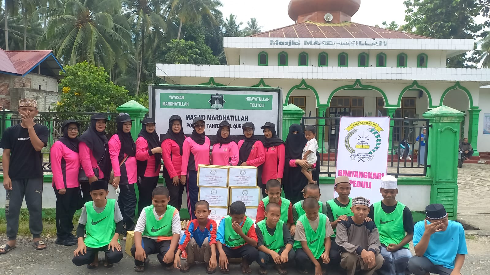 Ketua bhayangkari ranting galang Ny Ida Siswanto bersama anggota dan kapolsek galang Akp Siswanto, SH, MH. saat penyerahan menitipkan pesan buat santri agar belajar yg rajin ,jaga kesehatan, smoga kelak akan banyak penghafal alquran di tolitoli”Pesan Kapolsek Galang