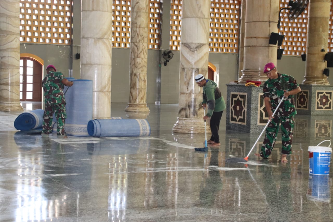 Bulan Ramadhan merupakan bulan suci yang ditunggu seluruh umat Islam, bulan penuh dengan rahmat dan ampunan Allah untuk menjadikan kita lebih mendekatkan diri pada Allah. Dalam menyambut bulan yang istimewa dan penuh berkah ini, Danyonmarhanlan IX Mayor Marinir Tamyasin Hehanussa bersama dengan seluruh prajurit Yonmarhanlan IX dan masyarakat melaksanakan Karya Bakti Pembersihan Tempat Ibadah di lingkungan Masjid Al Fatah.