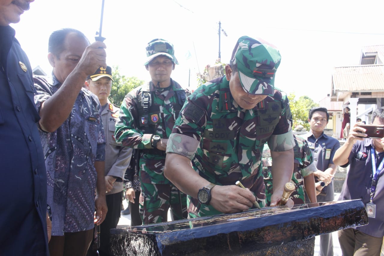 Tolitoli, Sulteng – Penandatanganan Prasasti TMMD 118 Kodim 1305/BT oleh Komandan Korem 132/Tdl Brigjen TNI Dody Triwinarto, S.I.P., M.Han menandai selesainya kegiatan TMMD 118 tahun 2023.