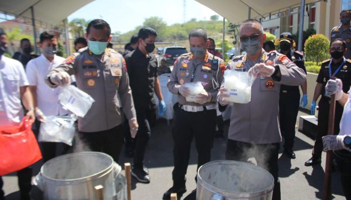 PALU, TABEnews.com-Masih ingat penangkapan kurir narkotika sabu lintas negara di wilayah Tolitoli, Sulawesi Tengah dengan barang bukti sabu sebanyak 15 Kg lebih, hari ini barang bukti tersebut dimusnahkan Polda Sulteng, Kamis (27/7/2023)