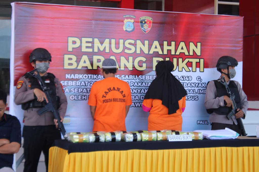 Sabu yang dimusnahkan sebanyak 15.238,4149 gram dan ganja 2.120 gram dipimpin Irwasda Polda Sulteng Kombes Pol Asep Ahdiatna, setelah sebelumnya sample barang bukti yang ditunjuk awak media diuji untuk mengetahui keasliannya.