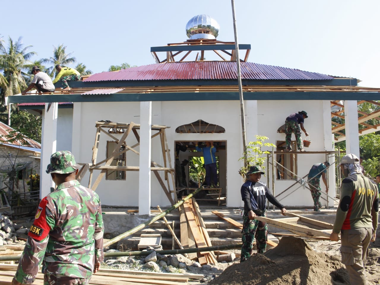 Saat ini proses pembagunan sendiri memasuki tahap pemasangan kubah Musholla, pengerjaanya dilakukan secara bersama-sama antara Anggota Satgas TMMD 118 bersama dengan warga masyarakat.