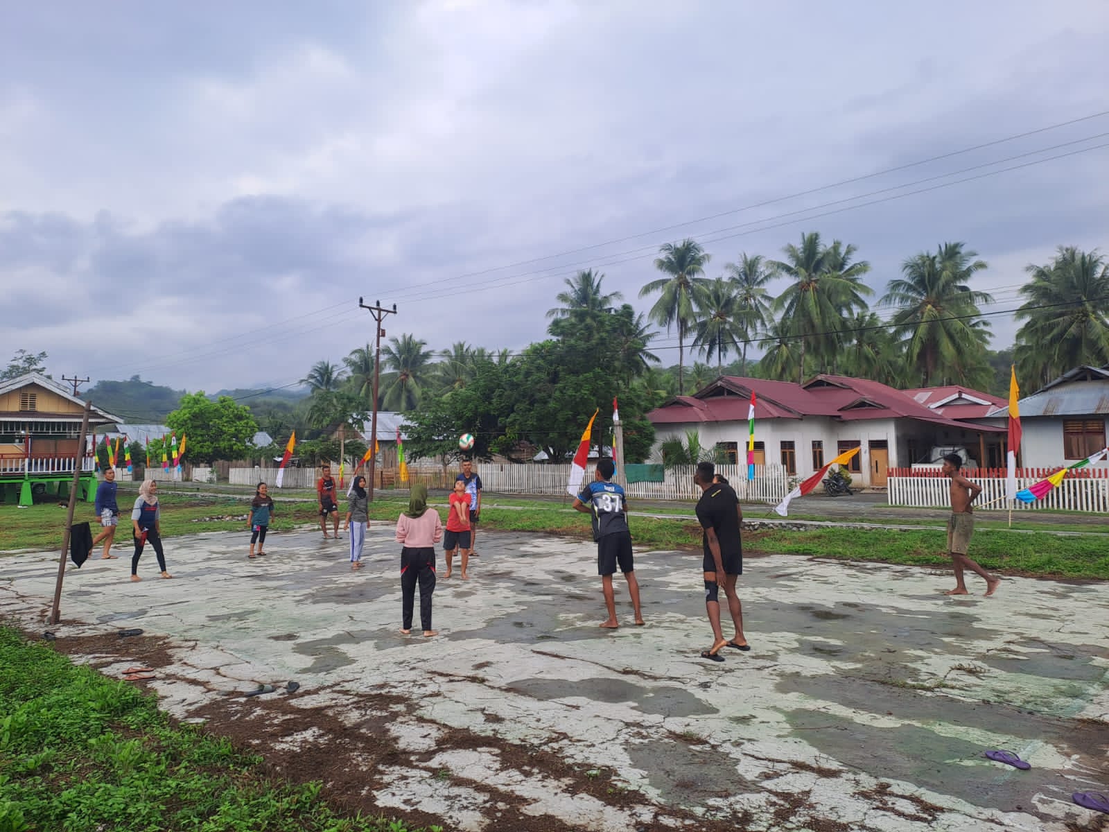 Kegiatan olahraga bersama dilakukan hampir setiap sore setelah selesai melaksanakan sejumlah pengerjaan di sasaran dan menunggu waktu magrib, Satgas TMMD menyempatkan waktu untuk berolahraga bersama anak remaja.
