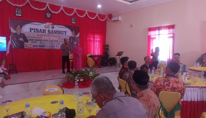 Acara ramah tamah pisah sambut Kapolres pada sabtu (12/4), sebagai bentuk penghargaan atas pengabdian AKBP Handri Wira Suriyana S.I.K, M.A.P yang kini mendapatkan amanah baru sebagai Wadansat Brimob Polda Kaltara, sedangkan jabatan baru Kapolres Buol kini resmi diemban oleh AKBP Irwan S.I.K MH, M.Tr.Opsla