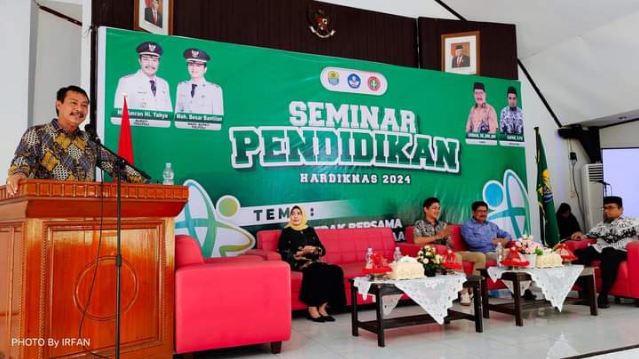 TOLITOLI – Bupati Tolitoli Hi.Amran Hi.Yahya membuka seminar pendidikan yang dilaksanakan oleh Dinas Pendidikan dan Kebudayaan bekerja sama dengan PGRI Kabupaten Tolitoli dalam rangka memperingati Hari Pendidikan Nasional (HARDIKNAS) ke-62 Tahun 2024. Dengan Tema * Bergerak Bersama Menuju Kemerdekaan Belajar Yang Berpusat Pada Murid * bertempat di Aula Kediaman Bupati Tolitoli pada hari (Rabu, 01-05/2024).