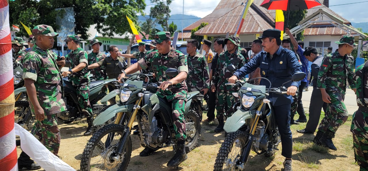 Tolitoli, Sulteng – Komandan Korem 132/Tdl, Brigjen TNI AD Dody Triwinarto, S.I.P., M.Han didampingi Bupati Tolitoli, Dandim 1305/BT Letkol Inf Dedi Akhiruddin, menggunakan motor trail tinjau lokasi proyek program TNI Manunggal Membangun Desa (TMMD) 118 yang sudah selesai dikerjakan, di Desa Galumpang Kecamatan Dakopamean Kabupaten Tolitoli, (19/10/2023).