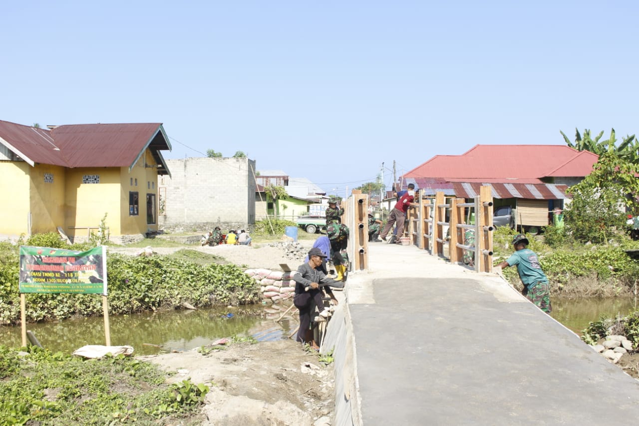 Tolitoli, Sulteng – Anggota Satuan Tugas (Satgas) TNI Manunggal Membangun Desa (TMMD) Ke-118 Kodim 1305/BT bersama dengan warga Desa Galumpang Kecamatan Dakopamean Kabupaten Tolitoli mulai mengerjakan tahapan finishing jembatan, Senin (06/10/2023).