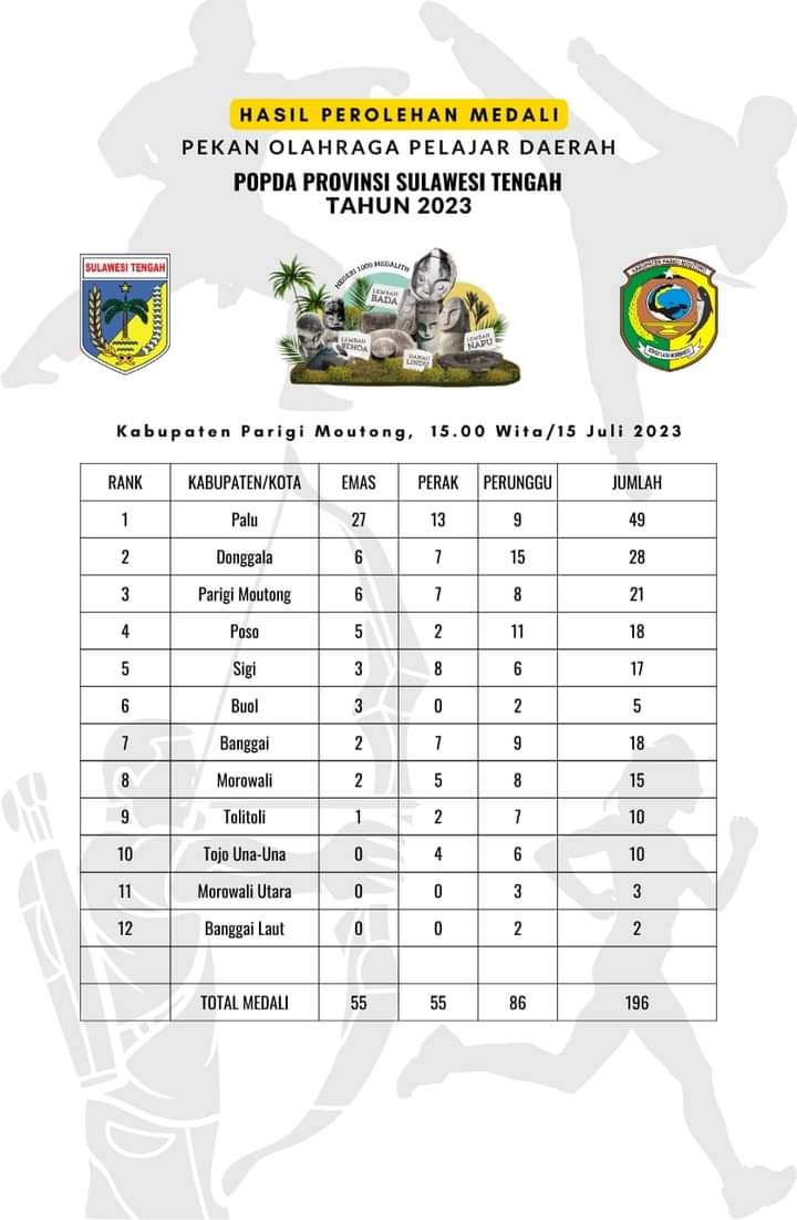 Informasi yang dikumpulkan media ini pada Sabtu (15/7/2023) Tolitoli tanpa tambahan medali emas sehingga melorot ke urutan 9 dari 12 kabupaten yang ikut.