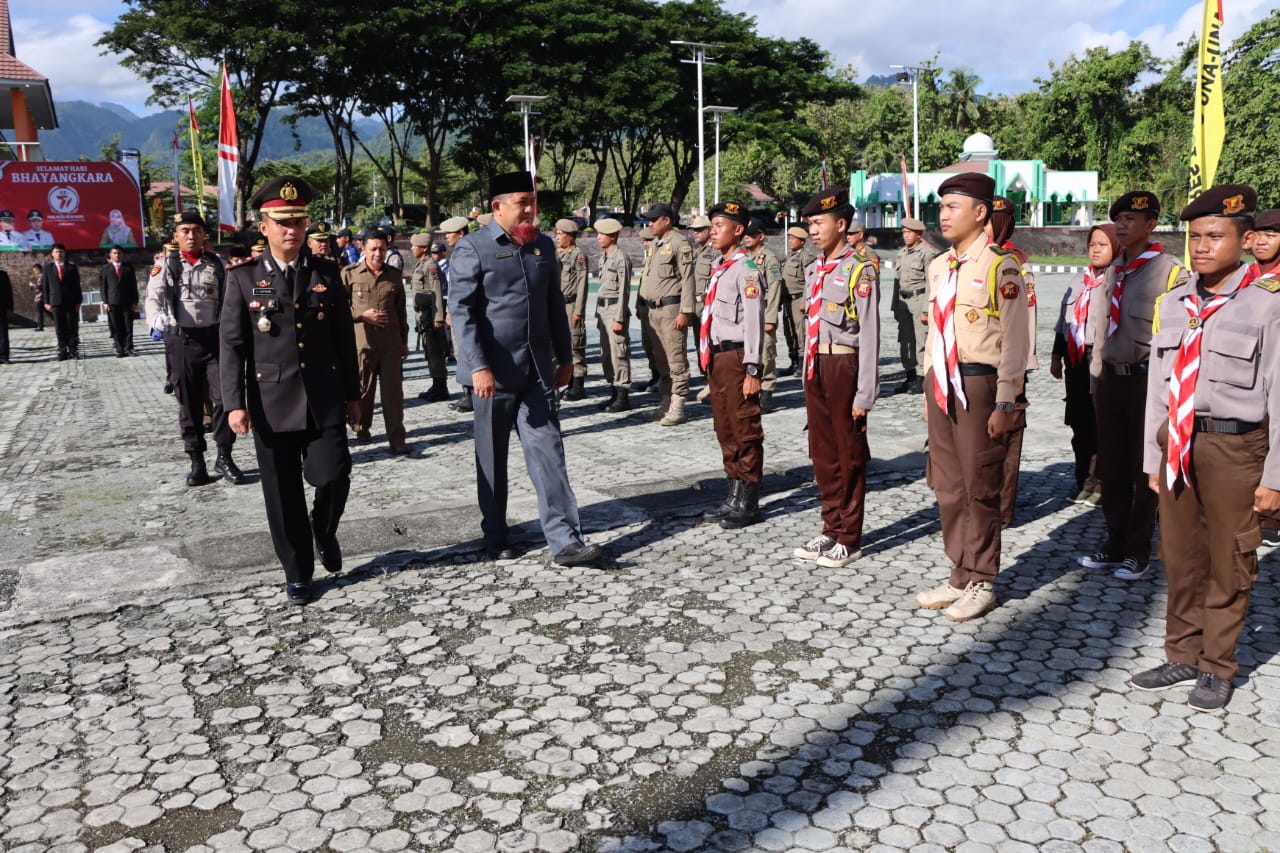Dalam upacara ini, Kapolres Touna didampingi Bupati, Wakil Bupati dan Forkopimda mengecek kesiapan Pasukan Upacara.
