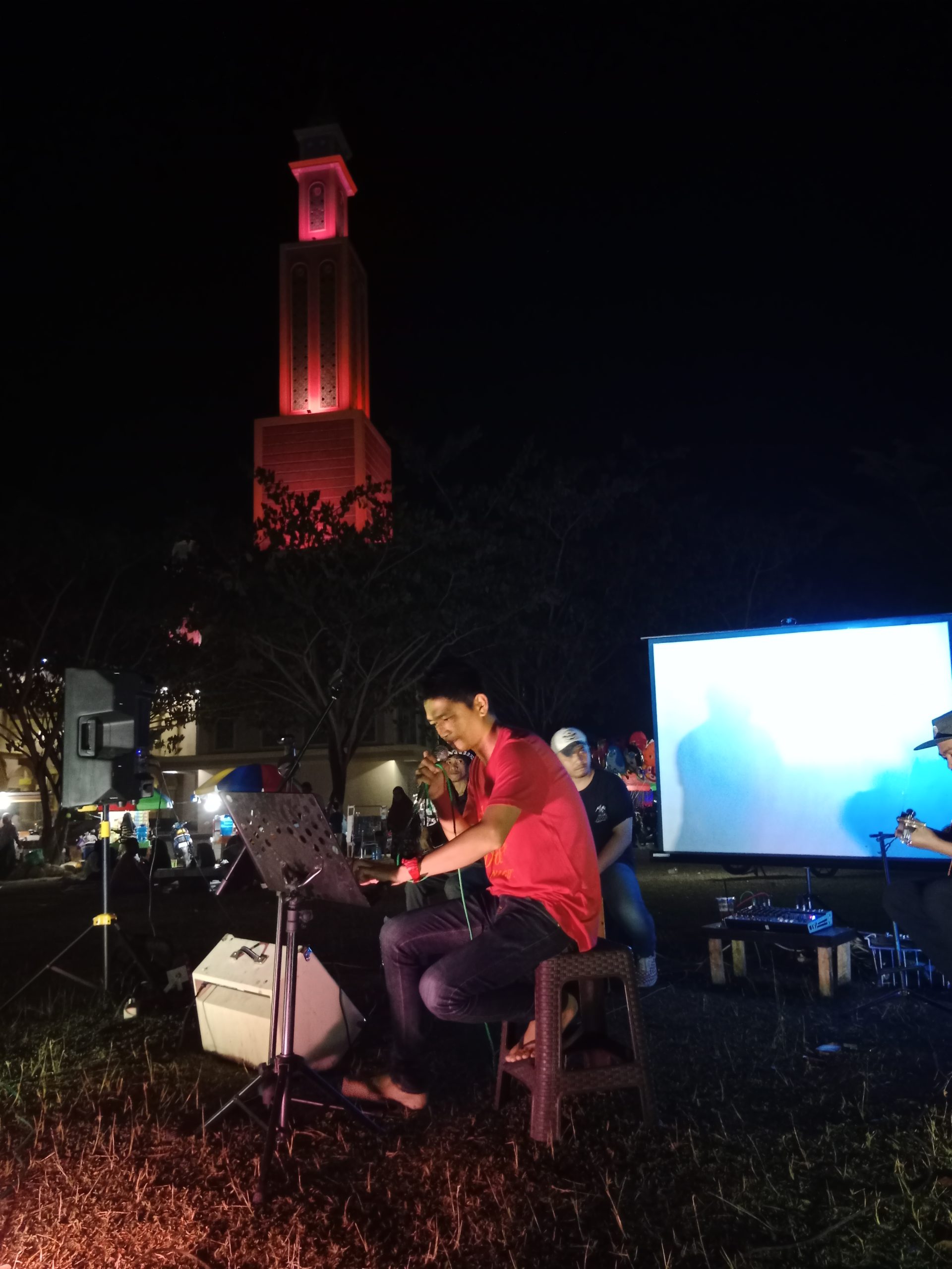 Tampak anak kedua dari Moh Saleh Bantilan–Alek–tertangkap kamera media ini saat tengah bawakan sebuah lagu di taman kota kabupaten Buol.