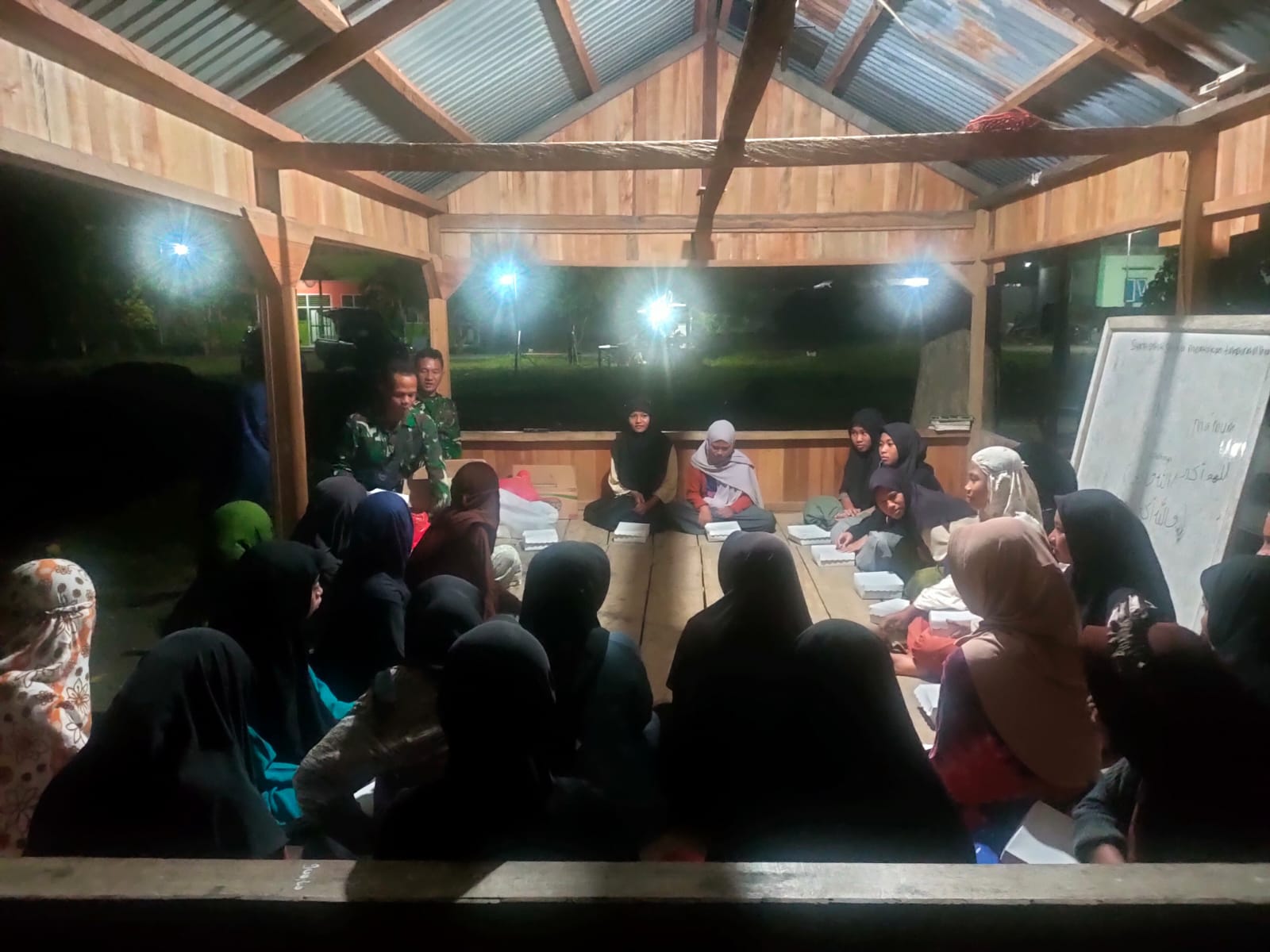 Pada Senin (12/2/2024) Jam menunjukkan Pukul 03.30 WITA. Meski suasana gelap gulita tidak menghambat para anggota TNI dari Kodim 1307/Poso untuk membagikan makanan yang sudah dikemas dan siap dinikmati ini kepada para Santri dan Santriwati di Pondok Pesantren Chairul Amin Tojo Una Una, dan Pondok Pesantren Wahdah Islamiah Kab. Poso.
